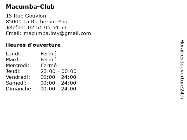 1 Les Bains Gourmands - Club Libertin (Distance: 0,47 km) 16 rue du Passage, 85000 La Roche-sur-Yon alcools, ambiance, bains, club, gourmands, innoubliable, jeux, les, libertin, mixte, plaisirs, rencontres, roles, sexy, soirees, themes 2 Football Club Robretieres - Accueil (Distance: 0,99 km) 29 Rue du Renou, 85000 La Roche sur Yon accueil, club, football, robretieres, sport, sportif, sports 3 Aéro-club Yonnais (Distance: 4,90 km) - Rue Henry Bessemer, 85000 La Roche-sur-Yon aviation, aéro, aéroclub, baptême, club, cours, pilotage, vol, yonnais 4 Club Vendée Poiré sur Vie Football - Secrétariat (Distance: 12,27 km) 1 Stade de l'Idonnière, 85170 Le Poiré sur Vie club, football, poiré, secrétariat, sport, sportif, sports, sur, vendée, vie 5 Poney Club de la Vie (Distance: 12,55 km) - Rue du Moulin à Elise, 85170 Le Poiré-sur-Vie centre équestre, cheval, chevaux, club, de, la, poney, vie, équitation 6 Wefit Club (Distance: 17,91 km) 26 Rue des Sables, 85140 Les Essarts activités, club, fitness, sport, wefit |