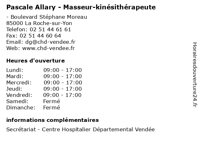 1 Dr Pascale Nauleau - Anesthésiste (Distance: 0,00 km) - Boulevard Stéphane Moreau, 85000 La Roche-sur-Yon anesthésiste, consultation, docteur, dr, med, médecin, nauleau, pascale, traitement 2 Dr Pascale Bailly - Médecin biologiste (Distance: 0,00 km) - Boulevard Stéphane Moreau, 85000 La Roche-sur-Yon bailly, biologiste, consultation, docteur, dr, med, médecin, pascale, traitement 3 Pascale Garnier Pages - Pédicure-podologue (Distance: 0,67 km) 6 Rue du Moulin Rouge, 85000 La Roche-sur-Yon garnier, orthoplastie, pages, pascale, podologue, pédicure, pédicurie 4 Pascale Charrier-Thibaud - Pédicure-podologue (Distance: 1,79 km) - Rue de Friedland, 85000 La Roche-sur-Yon charrier, cheville, orteil, pascale, pied, podologue, pédicure, thibaud 5 Alinéa Pascale Couturier (Distance: 6,65 km) 2 Rue de Beaupuy, 85000 Mouilleron-le-Captif alinéa, couturier, pascale 6 Dr Pascale Renaut - Médecin généraliste (Distance: 12,37 km) 16 bis Rue André Astoul, 85150 Landeronde docteur, dr, generaliste, généraliste, medical, médecin, pascale, renaut, soin |