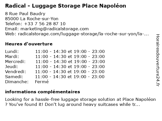 Termes de recherche pour Radical - Luggage Storage Place Napoléon:place, napoleon, radical, luggage, storage, luggage storage, luggage storage near me |