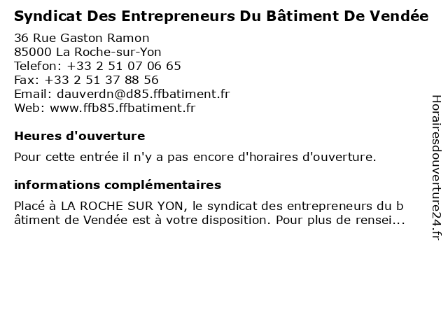 | Appeler Syndicat Des Entrepreneurs Du Bâtiment De Vendée | |