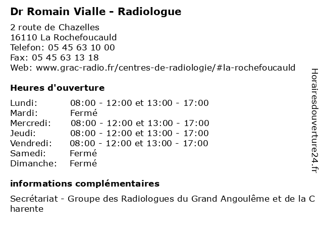 1 Dr Romain Vialle - Radiologue (Distance: 18,01 km) 10 chemin de Frégeneuil, 16800 Soyaux consultation, docteur, dr, med, médecin, médecine, radiologue, romain, traitement, vialle 3 Dr Jean-Marc Vialle - Médecin généraliste (Distance: 16,06 km) 2 Avenue de Montbron, 16340 L'Isle d'Espagnac consultation, docteur, dr, générale, généraliste, jean, marc, médecin, médecine, médecins, rendez, santé, sur, vialle, vous 5 Dr Romain Vialle - Radiologue (Distance: 20,81 km) 51 avenue du Président Wilson, 16000 Angoulême consultation, docteur, dr, med, médecin, médecine, radiologue, romain, traitement, vialle 6 Friconnet Romain (Distance: 23,82 km) Guiguette De La Grande Ile, 16570 Marsac friconnet, restaurants, romain |