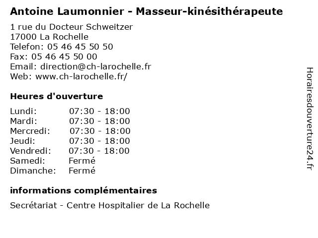 1 Emmanuelle Laumonnier - Masseur-kinésithérapeute (Distance: 0,00 km) 1 rue du Docteur Schweitzer, 17000 La Rochelle consultation, docteur, dr, emmanuelle, kinésithérapeute, laumonnier, masseur, med, médecin, traitement 2 Maître Antoine Mathiere - Avocat (Distance: 0,56 km) 1 Promenoir des Coureauleurs, 17000 La Rochelle antoine, avocat, droit, juridictionnelle, mathiere, maître, négociation 3 Maître Stéphane Antoine - Avocat (Distance: 1,39 km) 32 avenue Albert Einstein, 17000 La Rochelle antoine, avocat, droit, juridictionnelle, maître, négociation, stéphane 4 Chloé Antoine - Psychomotricienne (Distance: 1,42 km) 40 Avenue Albert Einstein, 17000 La Rochelle antoine, chloe, chloé, medecin, psycho, psychomotricienne, sante 5 Rousseau Antoine (Distance: 1,45 km) 74 Rue Emile Normandin, 17000 La Rochelle antoine, restaurants, rousseau 6 Dr. Antoine Barthe - Chirurgien-dentiste (Distance: 1,66 km) 12 rue du Commandant L’Herminier, 17000 La Rochelle antoine, barthe, chirurgien, consultation, dentiste, docteur, dr., med, médecin, traitement |