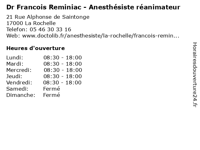 1 Dr Laurent Mazzocchi - Anesthésiste réanimateur (Distance: 0,00 km) 21 Rue Alphonse de Saintonge, 17000 La Rochelle anes, anesthésiste, dr, laurent, mazzocchi, réa, réanimateur 2 Dr Stéphane Leyre - Anesthésiste réanimateur (Distance: 0,00 km) 21 Rue Alphonse de Saintonge, 17000 La Rochelle anes, anesthésiste, dr, leyre, réa, réanimateur, stephane, stéphane 3 Dr François-Guillaume Bernard - Anesthésiste réanimateur (Distance: 0,00 km) 21 Rue Alphonse de Saintonge, 17000 La Rochelle anesthésiste, bernard, consultation, docteur, dr, françois, guillaume, med, médecin, réanimateur, traitement 4 Dr Lucie Thelen - Anesthésiste réanimateur (Distance: 0,00 km) 21 Rue Alphonse de Saintonge, 17000 La Rochelle anesthésiste, consultation, docteur, dr, lucie, med, médecin, réanimateur, thelen, traitement 5 Dr Thomas Dannappel - Anesthésiste (Distance: 0,19 km) 21 Rue Alfonse de Saintonge, 17000 La Rochelle anes, anesthésiste, dannappel, dr, réa, réanimateur, thomas 6 Dr Stéphane Beaumont - Anesthésiste réanimateur (Distance: 0,31 km) 102 Avenue Denfert-Rochereau, 17000 La Rochelle anes, anesthesiste, anesthésiste, beaumont, docteur, dr, réanimateur, soins, stéphane |