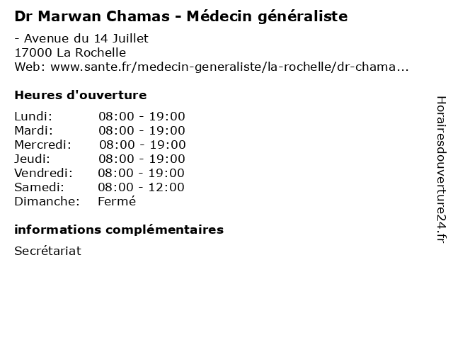 1 Dr Joseph Chamas - Médecin généraliste (Distance: 0,00 km) - Avenue du 14 Juillet, 17000 La Rochelle chamas, consultation, docteur, dr, généraliste, joseph, med, médecin, traitement 2 Dr Ilham Mezhari - Médecin généraliste (Distance: 51,63 km) 51 Route de la Sablière, 17920 Breuillet consultations, docteur, dr, généraliste, ilham, mezhari, médecin, médical 3 Adecco Généraliste (Distance: 52,59 km) 17 Rue Pascal Bourcy, 17400 Saint Jean D Angely adecco, agences, cdd, cdi, emploi, emploi intérim, généraliste, services 4 Medecin Jeannick Jagot (Médecin généraliste) (Distance: 53,07 km) 1 Rue delattre de Tassigny, 85310 Nesmy docteur, généraliste, jagot, jeannick, medecin, médecin, sante, services 5 Adecco Généraliste (Distance: 54,98 km) 358 Route d'Aiffres, 79000 Niort adecco, agences, cdd, cdi, emploi, emploi intérim, généraliste, services 6 Adecco Généraliste (Distance: 58,04 km) 25 Rue du Chemin Ferré, 17100 Saintes adecco, agences, cdd, cdi, emploi, emploi intérim, généraliste, services |