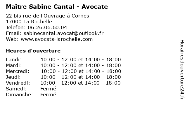 | Lundi | 10:00-12:00 et 14:00-18:00 |