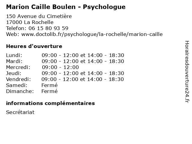 | Mardi | 09:00-12:00 et 14:00-18:30 |
