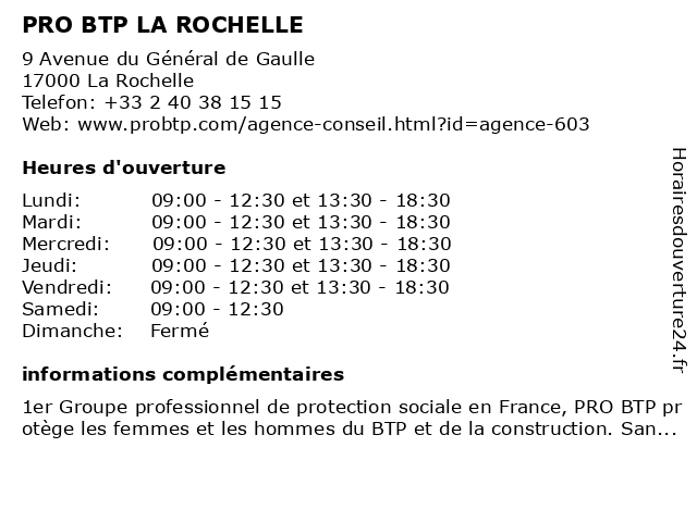 | Lundi | 09:00-12:30 et 13:30-18:30 |