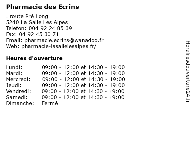 | Mardi | 09:00-12:00 et 14:30-19:00 |