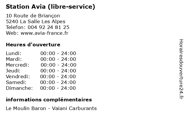 1 Station Avia (caisse et boutique) (Distance: 0,00 km) 10 Route de Briançon, 05240 La Salle Les Alpes avia, boutique, caisse, diesel, essence, et, service, station, voiture 2 Richardson - magasin et libre service (Distance: 7,13 km) 272 Rue des Couteliers, 05100 Briançon aménagement, equipement, et, libre, magasin, mobilier, richardson, service 3 Thevenin & Ducrot - Avia (Distance: 28,94 km) 10 Rue de la République, 73500 Modane accessoires, avia, ducrot, motos, services, stations, thevenin, voitures 4 Thevenin & Ducrot - Avia (libre service 24/24) (Distance: 28,94 km) 10 Rue de la République, 73500 Modane 24/24, accessoires, avia, ducrot, libre, motos, service, services, stations, thevenin, voitures 5 Thevenin & Ducrot - Avia (libre service 24/24) (Distance: 38,24 km) - Le Village, 38142 Le Freney-d'Oisans 24/24, accessoires, avia, ducrot, libre, motos, service, services, stations, thevenin, voitures 6 Thevenin & Ducrot - Avia (Distance: 38,24 km) - Le Village, 38142 Le Freney-d'Oisans accessoires, avia, ducrot, motos, services, stations, thevenin, voitures |