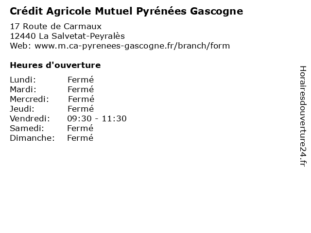 1 Crédit Agricole Mutuel Pyrénées Gascogne (Distance: 11,17 km) . Place du Foirail, 81190 Mirandol agricole, assurances, bancaire, banque, crédit, gascogne, mutuel, pyrénées, services 2 Crédit Agricole Nord Midi Pyrénées (Distance: 9,13 km) - Place du Foirail, 81190 Mirandol-Bourgnounac agence, agricole, assurance, bancaire, banque, crédit, midi, nord, pyrénées 3 Crédit Agricole Nord Midi Pyrénées (Distance: 9,94 km) - Tour de Ville, 12240 Rieupeyroux agence, agricole, assurance, bancaire, banque, crédit, midi, nord, pyrénées 4 Crédit Agricole Nord Midi Pyrénées (Distance: 11,17 km) - Avenue de la Gare, 12800 Naucelle agence, agricole, assurance, bancaire, banque, crédit, midi, nord, pyrénées 5 Crédit Agricole Nord Midi Pyrénées (Distance: 13,17 km) 13 Rue de la Fontaine, 12270 La Fouillade agence, agricole, assurance, bancaire, banque, crédit, midi, nord, pyrénées 6 Crédit Agricole Nord Midi Pyrénées (Distance: 15,79 km) 10 Avenue Paul Bodin, 81190 Tanus agence, agricole, assurance, banque, credit, crédit, midi, mutuel, nord, pyrenees, pyrénées |