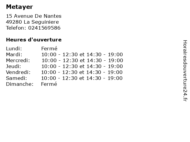 | Samedi | 10:00-12:30 et 14:30-19:00 |