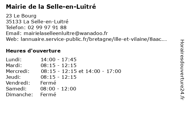Termes de recherche pour Mairie de la Selle-en-Luitré:en, la, de, administration, mairie, selle, luitré, service public |