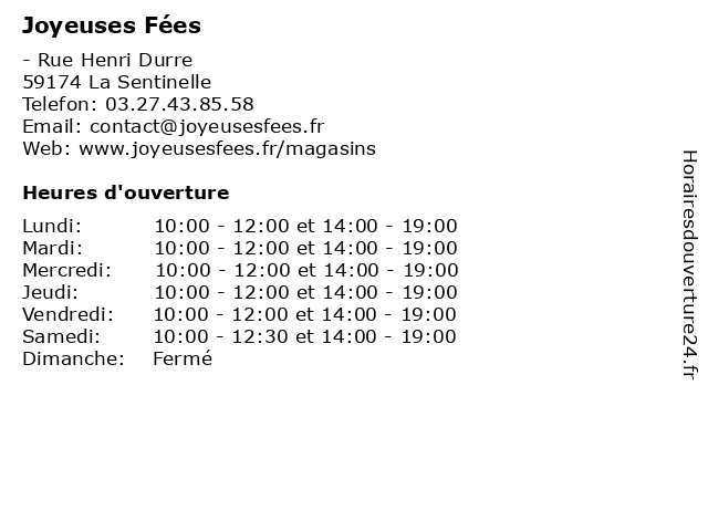 | Samedi | 10:00-12:30 et 14:00-19:00 |