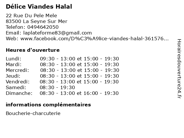 1 Delice Viande Halal (Distance: 2,56 km) 1675 Rue Du Pele Mele, 83500 La Seyne Sur Mer boucheries, delice, fccs, halal, poissonneries, viande 3 Mar Vivo Viandes (Distance: 4,22 km) Imm Le Floride a Mar Vivo, 83500 La Seyne Sur Mer boucheries, mar, poissonneries, viandes, vivo 5 Societe d'Exploitation Des Etablissement s Honnore Viandes (Distance: 4,90 km) 6 Place Martin Bidoure, 83200 Toulon boucheries, etablissement, exploitation, honnore, poissonneries, societe, viandes 6 Délice Restaurant (Distance: 5,73 km) 5 Rue Anatole France, 83000 Toulon boulangerie, délice, glacier, pâtisserie, restaurant, traiteur |