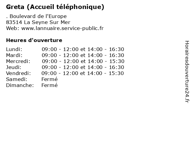 | Mardi | 09:00-12:00 et 14:00-16:30 |