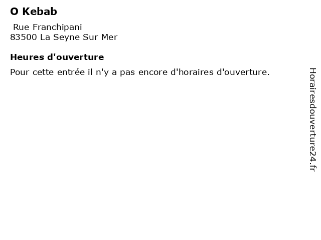 1 Bagci Kebab (Distance: 0,09 km) 12 Quai Saturnin Fabre, 83500 La Seyne Sur Mer bagci, emsu, kebab, restaurants 2 Anatolia Kebab (Distance: 4,20 km) 86 Avenue du 15E Corps, 83200 Toulon anatolia, bar, bistro, bistrot, brasserie, café, kebab, pub, restaurant, restauration, resto, turc 3 Kebab Antalya (Distance: 4,63 km) 158 Avenue de la République, 83000 Toulon antalya, bar, bistro, bistrot, brasserie, café, kebab, restaurant, restauration, turc 4 Grill Kebab (Distance: 4,89 km) 6bis Boulevard Pierre Toesca, 83000 Toulon esse, grill, kebab, restaurants 5 La Grillade Kebab Ege (Distance: 4,98 km) 37 Boulevard de Bazeilles, 83000 Toulon bar, bistro, bistrot, brasserie, café, ege, grillade, kebab, la, restaurant, restauration, turc 6 Royal Kebab (Distance: 10,77 km) 22 Rue Leon Gambetta, 83130 La Garde bar, bistro, bistrot, brasserie, café, kebab, pub, restaurant, restauration, resto, royal, turc |