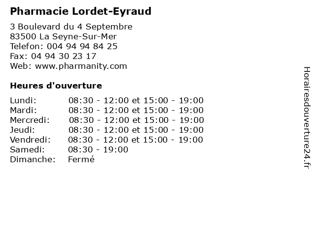| Lundi | 08:30-12:00 et 15:00-19:00 |