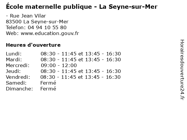 | Mardi | 08:30-11:45 et 13:45-16:30 |