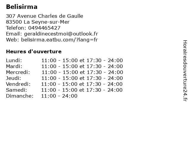 | Mardi | 11:00-15:00 et 17:30-24:00 |
