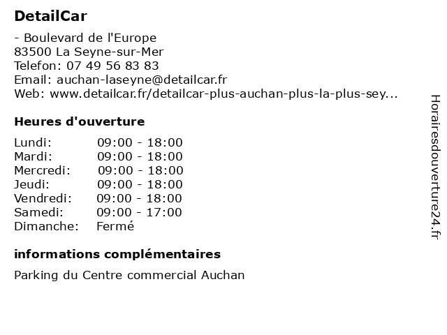 1 DetailCar (Distance: 6,05 km) 20 rue Revel, 83000 Toulon centre, detailcar, eau, lavage, nettoyage, sans, voitures, écologique 3 DetailCar (Distance: 19,81 km) n/a Chemin du Rocher, 83400 Hyères detailcar, détailcar, lavage, voiture, économique 4 DetailCar Marseille Bonneveine (Distance: 40,70 km) 122 Avenue de Hambourg, 13008 Marseille bonneveine, detailcar, lavage, marseille, station, voiture 5 DetailCar Marseille Félix Baret (Distance: 42,82 km) 74 rue perrin solliers, 13006 Marseille baret, detailcar, félix, le lavage des voitures, marseille, une bonne attention 6 DetailCar Marseille Armeny (Distance: 43,39 km) 4 Rue Armény, 13006 Marseille armeny, detailcar, lavage, marseille, station, voiture |