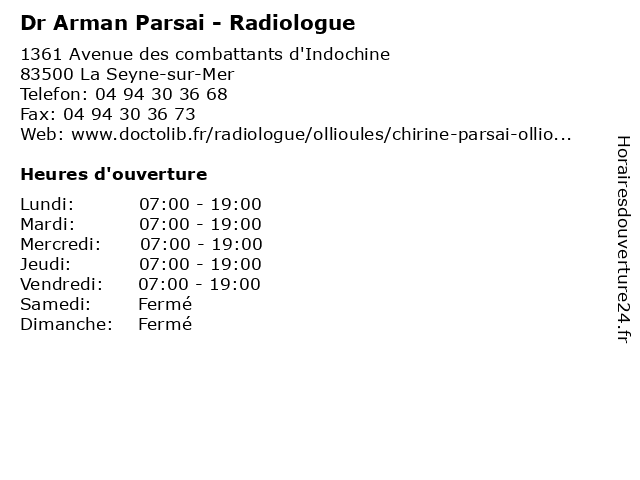 | Lundi | 07:00-19:00 |