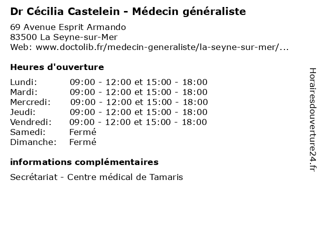 | Mercredi | 09:00-12:00 et 15:00-18:00 |