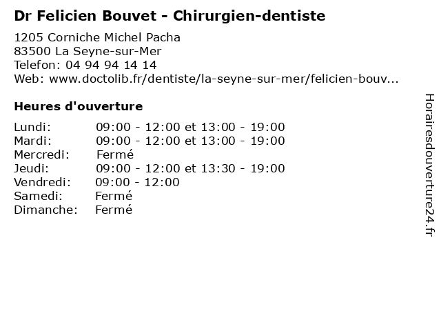 | Jeudi | 09:00-12:00 et 13:30-19:00 |