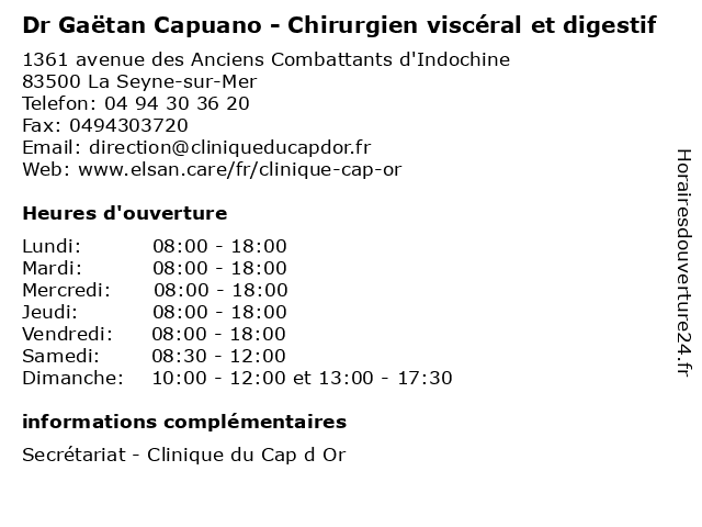 1 Dr André Khoury-Helou - Chirurgien viscéral et digestif (Distance: 0,73 km) - Avenue Jules Renard, 83507 La Seyne-sur-Mer 83507, andré, chirurgien, digestif, dr, et, helou, hôpital, khoury, mer, seyne, sur, viscéral 2 Dr Salvatore Avallone - Chirurgien viscéral et digestif (Distance: 0,91 km) 349 Avenue de Rome, 83500 La Seyne-sur-Mer avallone, chirurgien, consultation, digestif, docteur, dr, et, med, médecin, salvatore, traitement, viscéral 3 Dr Denis Lubrano - Chirurgien viscéral et digestif (Distance: 2,59 km) 332 Avenue Frédéric Mistral, 83190 Ollioules chirurgie, chirurgien, denis, digestif, dr, et, general, lubrano, soins, viscéral 4 Dr Frédéric Laure - Chirurgien viscéral et digestif (Distance: 2,60 km) 332 Avenue Frédéric Mistral, 83190 Ollioules chirurgien, consultation, digestif, docteur, dr, et, frédéric, laure, med, médecin, médecine, secrétariat, traitement, viscéral 5 Dr Philippe Farthouat - Chirurgien viscéral et digestif (Distance: 7,13 km) 47 Avenue Georges Bizet, 83000 Toulon chirurgie, chirurgien, digestif, dr, et, farthouat, general, philippe, soins, viscéral 6 Medecin François Meusnier (Chirurgien viscéral) (Distance: 7,14 km) 47 Georges Bizet, 83000 Toulon chirurgien, docteur, françois, medecin, meusnier, sante, services, viscéral |