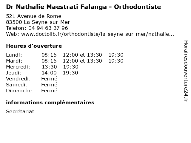 Lundi | 08:15-12:00 et 13:30-19:30 |