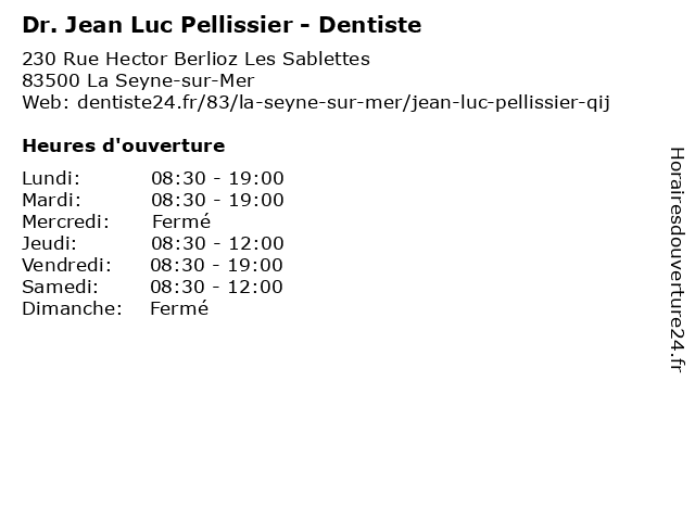 1 Dr. Arnaud Pellissier - Dentiste (Distance: 0,00 km) 230 Rue Hector Berlioz, 83500 La Seyne-sur-Mer arnaud, dentiste, docteur, dr., medecins, pellissier, sante 2 Dr Luc Bouyard - Psychiatre (Distance: 3,71 km) 421 avenue Jules-Renard, 83500 La Seyne-sur-Mer bouyard, consultation, docteur, dr, luc, med, médecin, médecine, psychiatre, traitement 3 Dr Jean-Luc Vaillant - Chirurgien urologue - secrétariat (Distance: 4,40 km) 521 Avenue de Rome, 83500 La Seyne-sur-Mer chirurgien, consultation, docteur, dr, jean, luc, med, médecin, médecine, secrétariat, traitement, urologue, vaillant 4 Dr Jean-Luc Courty - Ophtalmologiste (Distance: 5,99 km) 30 rue Victor Clappier, 83000 Toulon courty, docteur, dr, jean, luc, ophtalmologie, ophtalmologiste, praticien, santé 5 CER Jean Luc (Distance: 6,26 km) 163 Général Gouraud, 83200 Toulon cer, ecole, jean, luc, permi, routière, services 6 Dr Jean-Luc Le Gall - Médecin généraliste (Distance: 6,43 km) 104 Avenue Clovis Hugues, 83200 Toulon consultation, docteur, domicile, dr, en, gall, générale, généraliste, jean, le, luc, médecin, médecine, santé, visite |