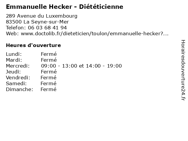 | Mercredi | 09:00-13:00 et 14:00-19:00 |
