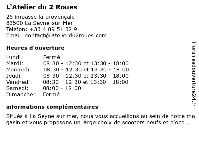 | Mardi | 08:30-12:30 et 13:30-18:00 |