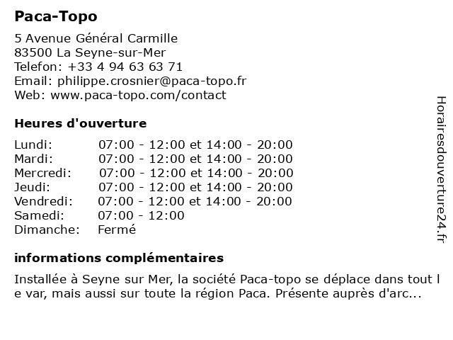| Mercredi | 07:00-12:00 et 14:00-20:00 |