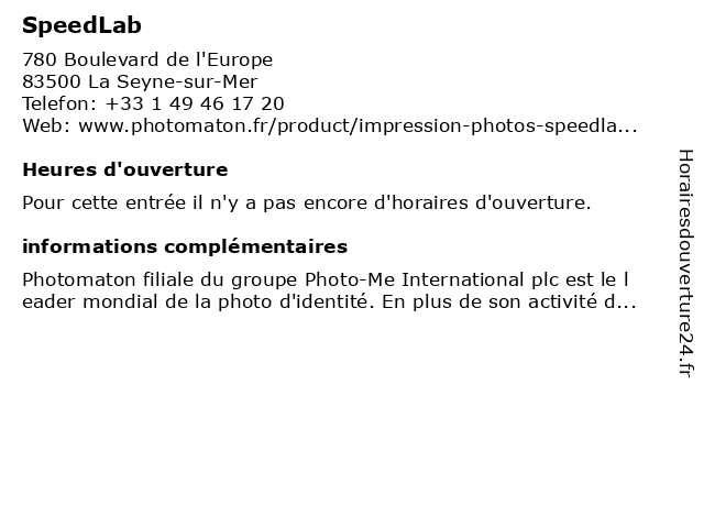 1 SpeedLab (Distance: 0,41 km) Avenue Jean Albert Lamarque, 83500 La Seyne-sur-Mer speedlab