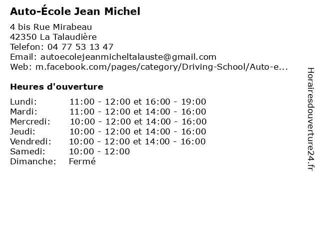 | Lundi | 11:00-12:00 et 16:00-19:00 |