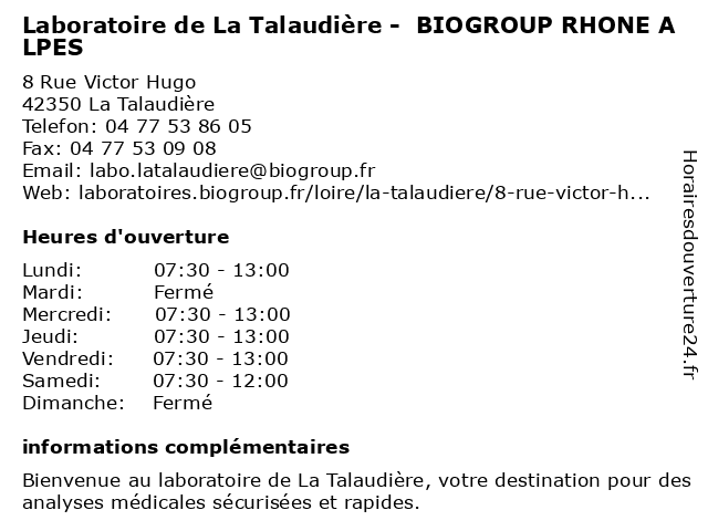 Termes de recherche pour Laboratoire de La Talaudière - BIOGROUP RHONE ALPES:la, de, laboratoire, alpes, rhone, talaudière, biogroup, dépistages, laboratoire de diagnostic |