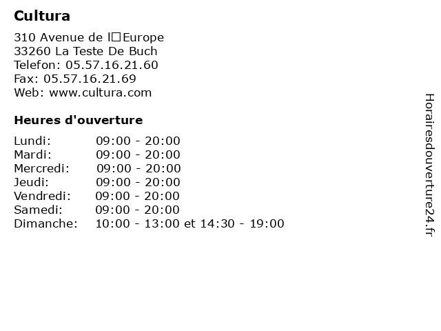 | Dimanche | 10:00-13:00 et 14:30-19:00 |