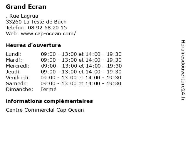 | Lundi | 09:00-13:00 et 14:00-19:30 |