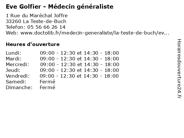 | Lundi | 09:00-12:30 et 14:30-18:00 |