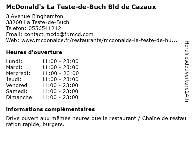 | Mercredi | 11:00-23:00 |
