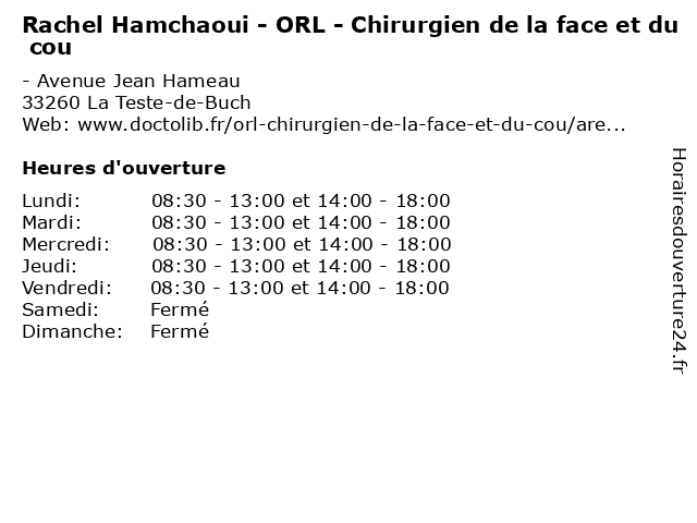 | Mardi | 08:30-13:00 et 14:00-18:00 |