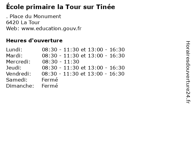 | Mardi | 08:30-11:30 et 13:00-16:30 |