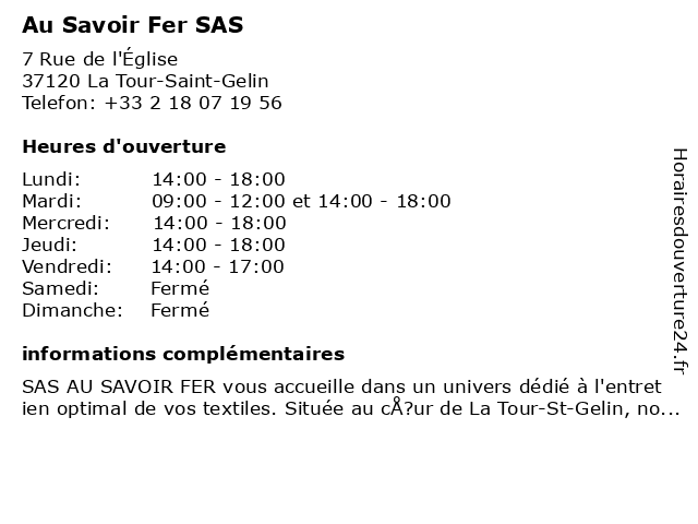 | Samedi | Fermé |