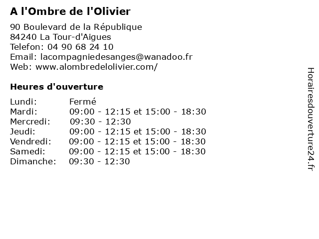 | Mardi | 09:00-12:15 et 15:00-18:30 |