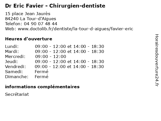 | Lundi | 09:00-12:00 et 14:00-18:30 |