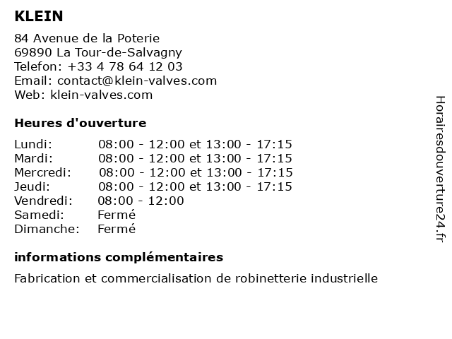 Lundi | 08:00-12:00 et 13:00-17:15 |