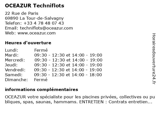 1 OCEAZUR MONT D'OR (Distance: 3,78 km) 46 C Chemin du Moulin Carron, 69570 Dardilly d'or, mont, oceazur 2 OCEAZUR A Mickael Piscines (Distance: 19,42 km) 100 Rue Georges Mangin, 69400 Villefranche-sur-Saône mickael, oceazur, piscines |