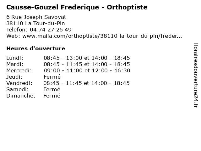 | Lundi | 08:45-13:00 et 14:00-18:45 |