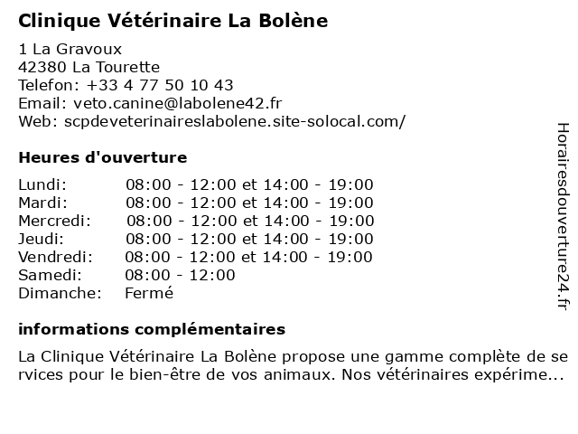 | Mercredi | 08:00-12:00 et 14:00-19:00 |