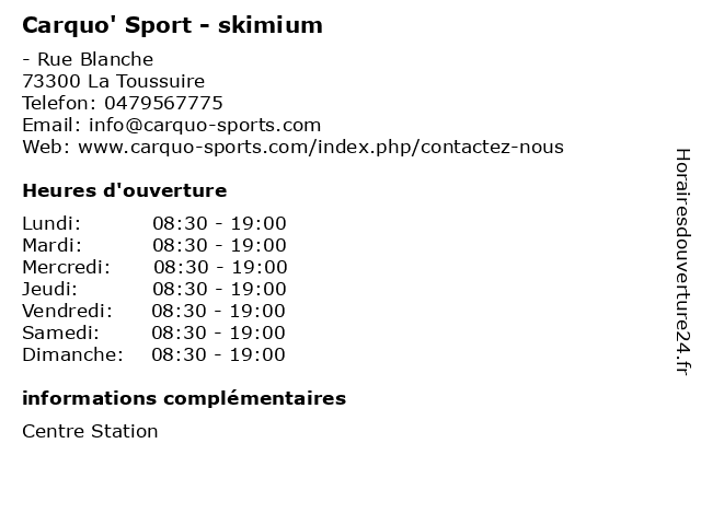 | Dimanche | 08:30-19:00 |